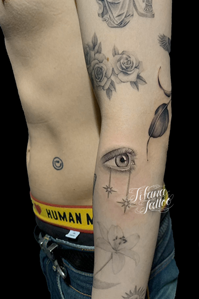 ファインライン・タトゥー GALLERY ARTIST AKI 2025.10.04 繊細なそれぞれのモチーフの大きさや位置を考えてデザインしたファインライン・タトゥー。 STYLE ファインライン MOTIF 植物 人体パーツ SIZE 7分~フルスリーブ #百合、ユリ #目 #薔薇、ローズ SHARE