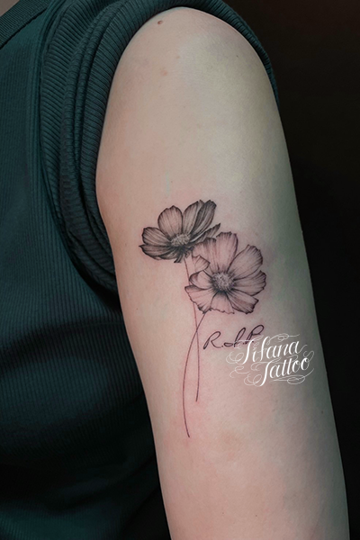 ボタニカル・タトゥー GALLERY ARTIST LEI 2026.01.19 コスモスを繊細に描いたファインライン・タトゥー。所要時間の目安は2時間前後です。 STYLE ファインライン MOTIF 植物 SIZE タバコサイズ PARTS 腕 #コスモス SHARE