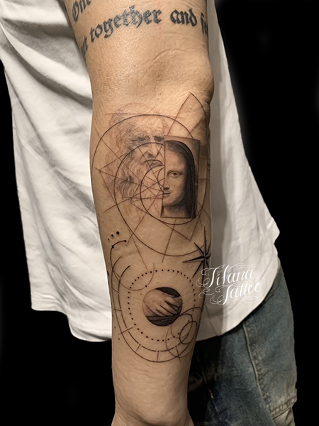 モナリザ|レオナルドダヴィンチの自画像|幾何学のタトゥー GALLERY ARTIST AKI 2026.01.25 レオナルドダヴィンチの自画像にモナリザを組み合わせたジオメトリック・タトゥー。所要時間の目安は6時間前後です。 STYLE ファインライン MOTIF ジオメトリー ポートレイト SIZE CDジャケット PARTS 腕 #幾何学模様 SHARE