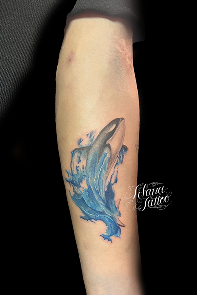 鯱|波のタトゥー GALLERY ARTIST TOMO 2025.10.01 鯱|波をひとつのデザインにまとめたファインライン・タトゥー。所要時間の目安は5時間前後です。 STYLE ファインライン MOTIF 水の生き物 SIZE CDジャケット PARTS 腕 #シャチ SHARE